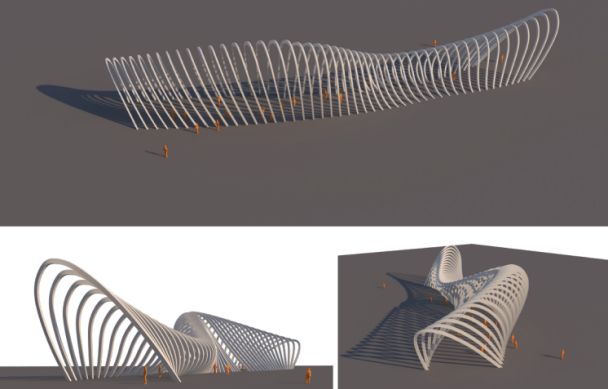 本次中標設(shè)計范圍為公園紅線范圍內(nèi)的所有鋼結(jié)構(gòu)構(gòu)筑物(包括紅線外的延伸部分)及幕墻,涉及到鋼結(jié)構(gòu)涼亭、鋼結(jié)構(gòu)雨棚、鋼結(jié)構(gòu)連廊、海堤鋼結(jié)構(gòu)構(gòu)筑物、摩天輪廣場構(gòu)筑物、游客服務(wù)中心入口構(gòu)筑物、天幕廣場構(gòu)筑物、遮雨涼亭、景觀橋(鋼結(jié)構(gòu)部分)等鋼結(jié)構(gòu)構(gòu)筑物設(shè)計和游客服務(wù)中心(含附屬樓)的幕墻設(shè)計等18個子項設(shè)計內(nèi)容,投影面積約 2萬平方米。鋼結(jié)構(gòu)構(gòu)筑物最大跨度達40米,所有項目均為曲面異型結(jié)構(gòu),造型新穎,設(shè)計難度大,因此投標采用了邀請投標的形式。